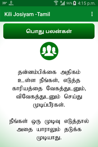 Appen är särskilt användbar för den tamilska befolkningen, vilket gör den till ett värdefullt verktyg för dem som söker vägledning och förståelse av sina liv genom astrologi. Den är utformad för att vara lättillgänglig, vilket gör att även nybörjare kan navigera i dess funktioner utan svårigheter. Kili Josiyam - Tamil kombinerar traditionell visdom med modern teknik, vilket ger en unik upplevelse för sina användare.